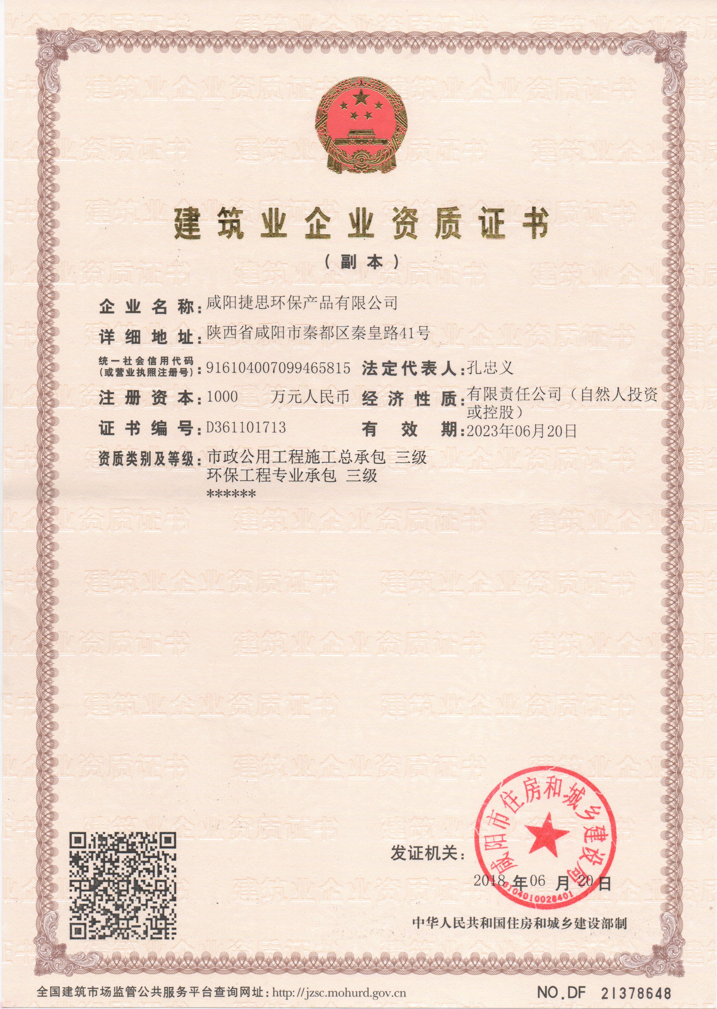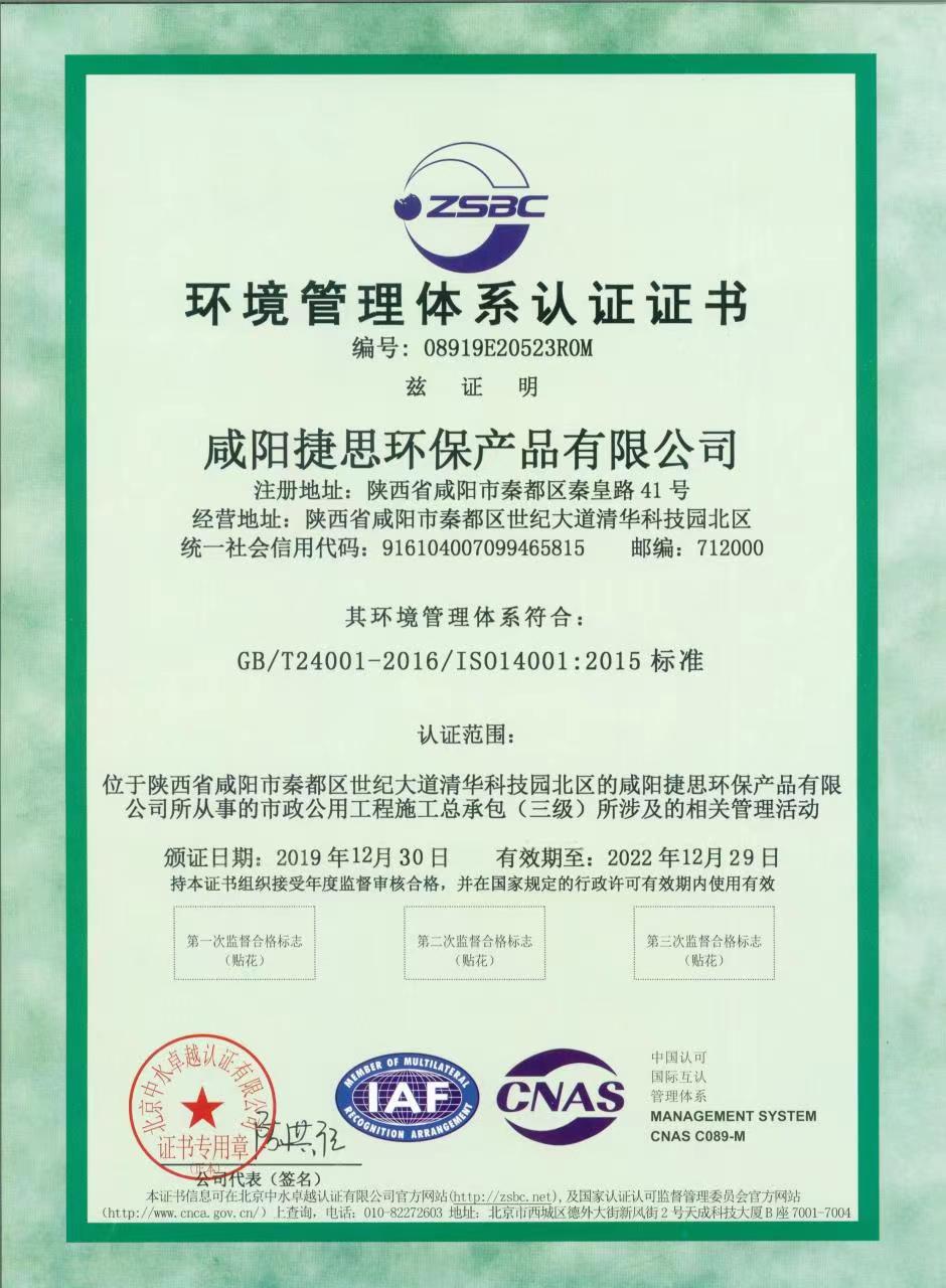 咸陽捷思環(huán)保產(chǎn)品有限公司,位于美麗的古城咸陽,創(chuàng)建于1998年,已獲得市政公用工程施工總承包、環(huán)保工程專業(yè)承包、安全生產(chǎn)許可證等。本公司長期致力于水處理設(shè)備的研究與開發(fā),注重采用當今先進的技術(shù),不斷的改進加工工藝,使我們的產(chǎn)品不斷推陳出新,在國內(nèi)遙遙領(lǐng)先,在國際上已具有相當?shù)母偁幜Γ淞己玫馁|(zhì)量和優(yōu)質(zhì)的售后服務(wù),贏得了全球用戶的認同及信賴。